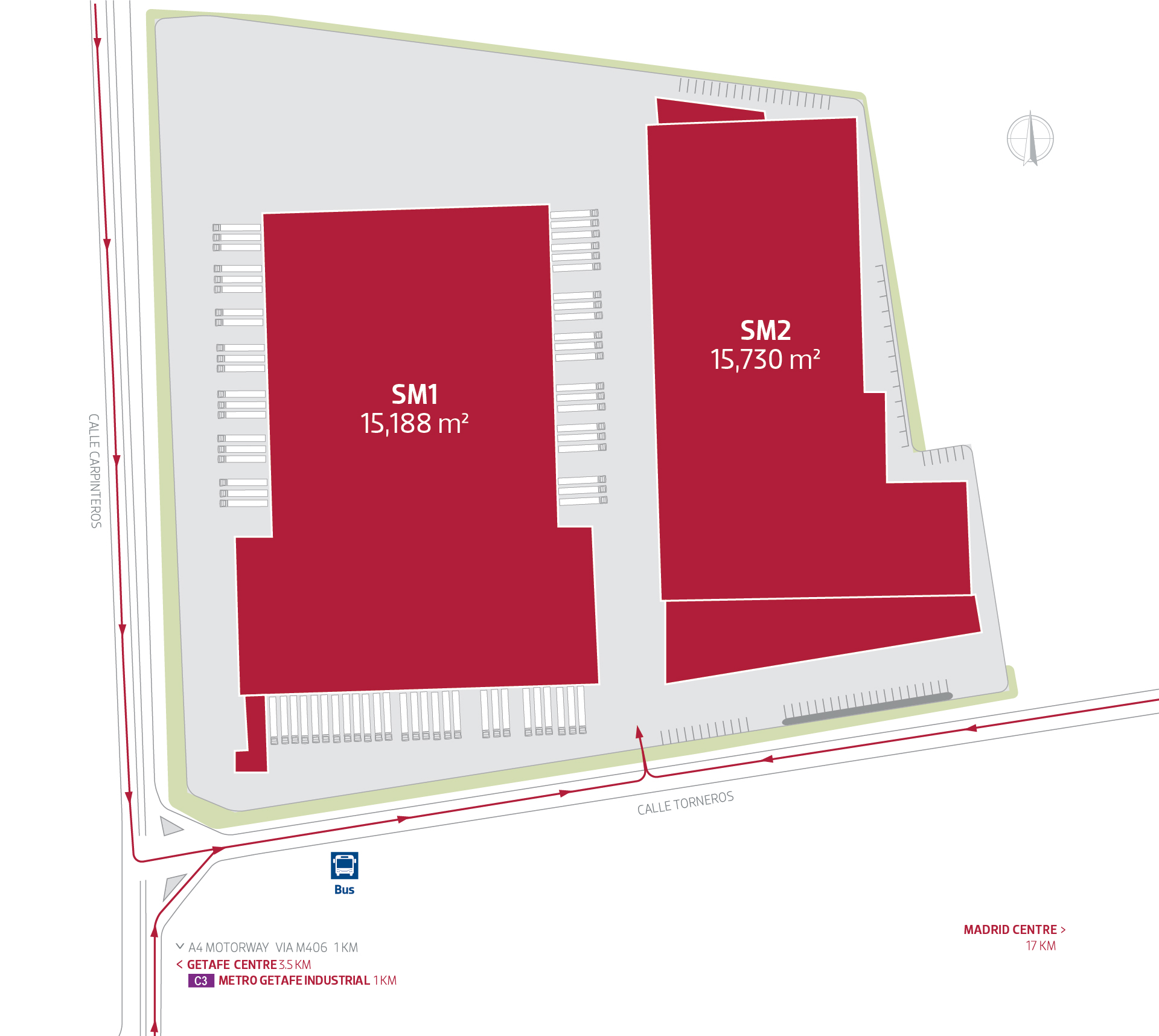 La propiedad consta de dos medianas logísticas situadas junto a la salida 13 de la autopista A-4, en el polígono industrial Los Ángeles en Getafe, a 15 kilómetros de distancia del centro de Madrid. La primera nave, denominada C.L.I., es una instalación de cross-docking, mientras que la segunda, denominada S.I.L., es un almacén logístico con oficinas. El C.L.I. y el S.I.L. se construyeron sobre una parcela de 56.052 m² en 1999. Las medianas tienen una superficie de 15.186,94 m² para el C.L.I. y 15.730,26 m² para el S.I.L.