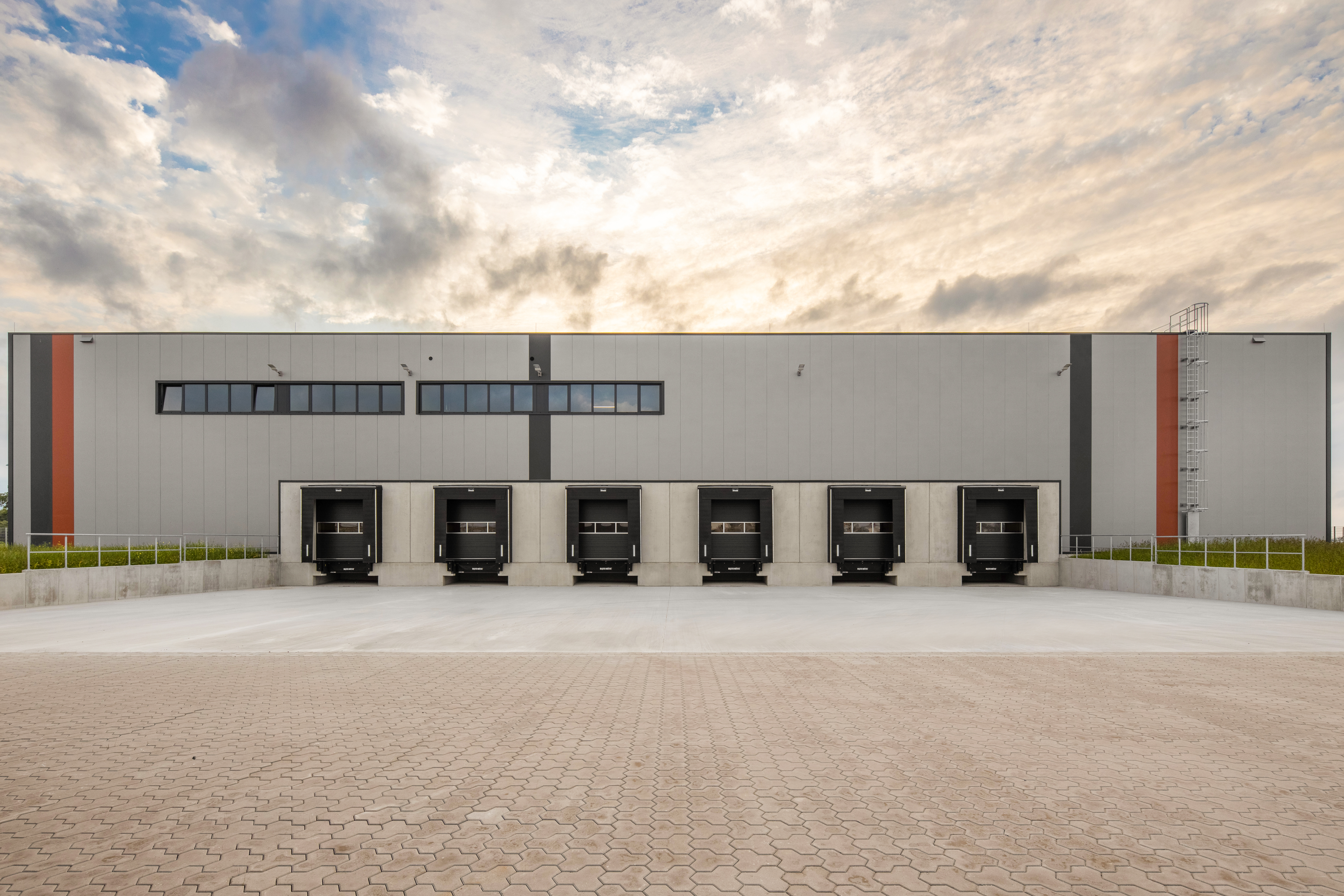 Built to a high environmental standard and certified DGNB Gold, the complex features energy‑efficient LED lighting and a digital monitoring system that tracks resource consumption and environmental conditions in real time. Additional sensors measure loading‑dock and floor‑load stresses, supporting predictive maintenance.