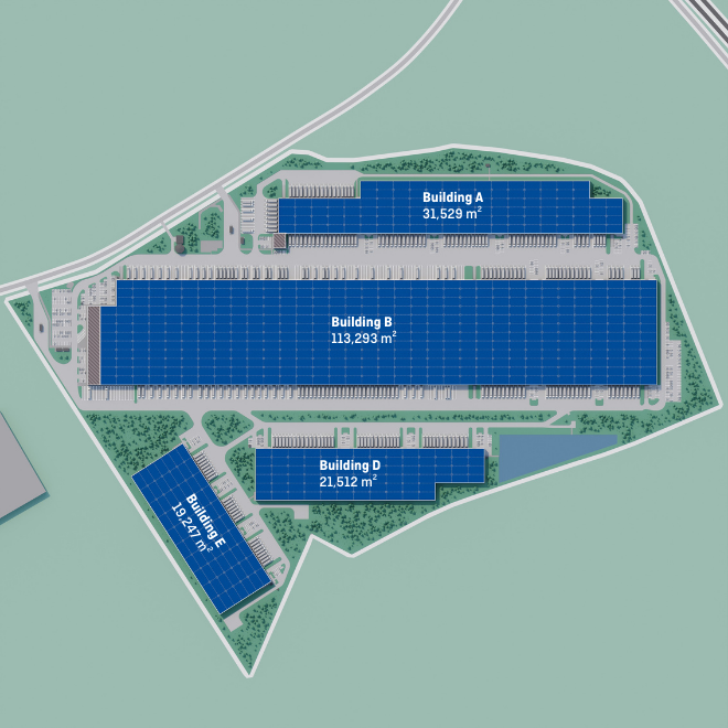 P3 Wrocław II is a modern logistics park located in one of the region's largest logistics hubs. The complex consists of four buildings with a total area of approximately 200,000 m², designed for both warehousing and light production. The investment is BREEAM-certified at the "Excellent" level.