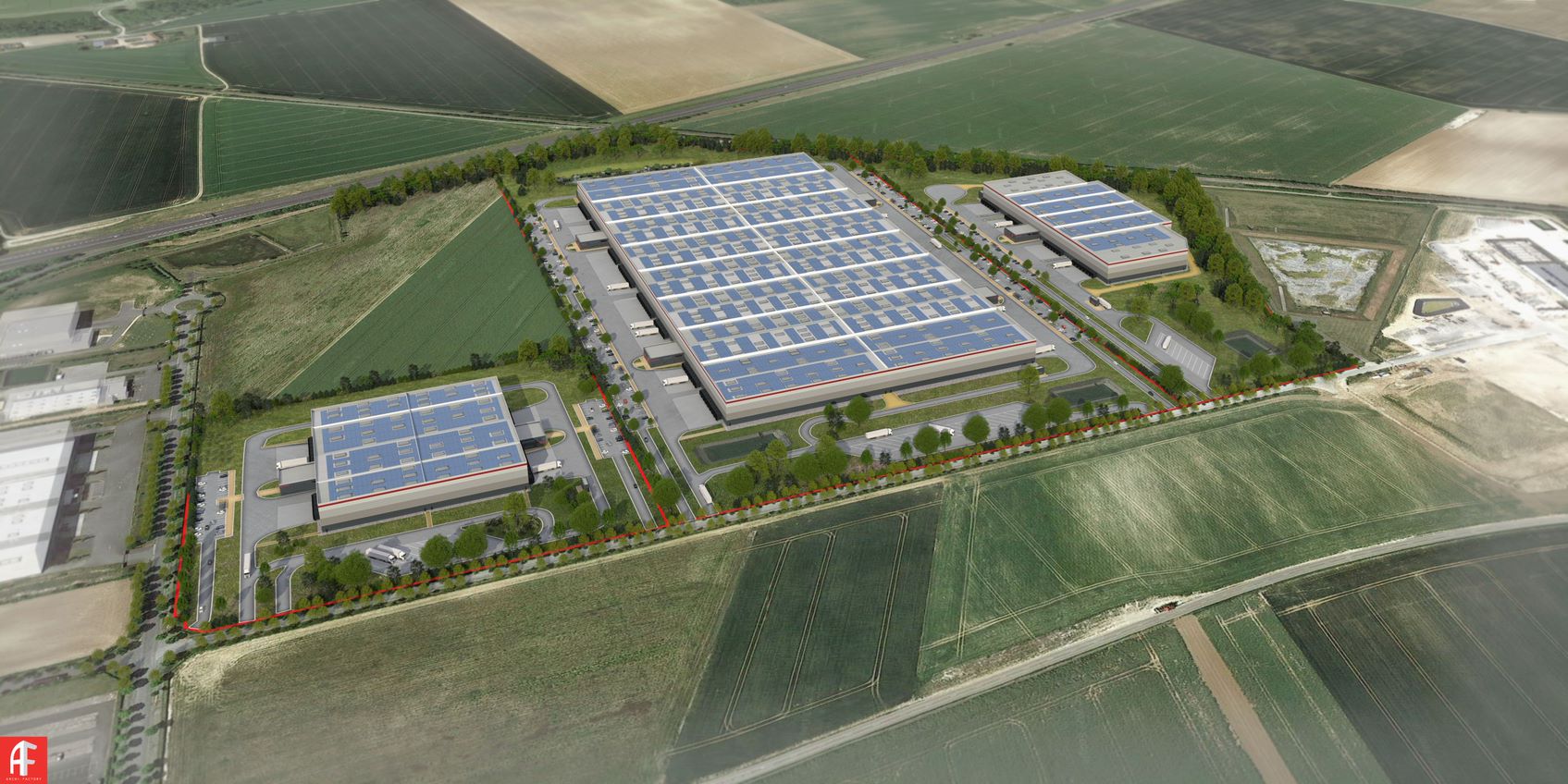 P3 Laon is strategically located in the Hauts-de-France region, in the heart of the Pôle d'Activités du Griffon, a fast-growing industrial and logistics zone. The site is situated just 2 minutes from exit 13 of the A26 motorway, at its junction with the N2.