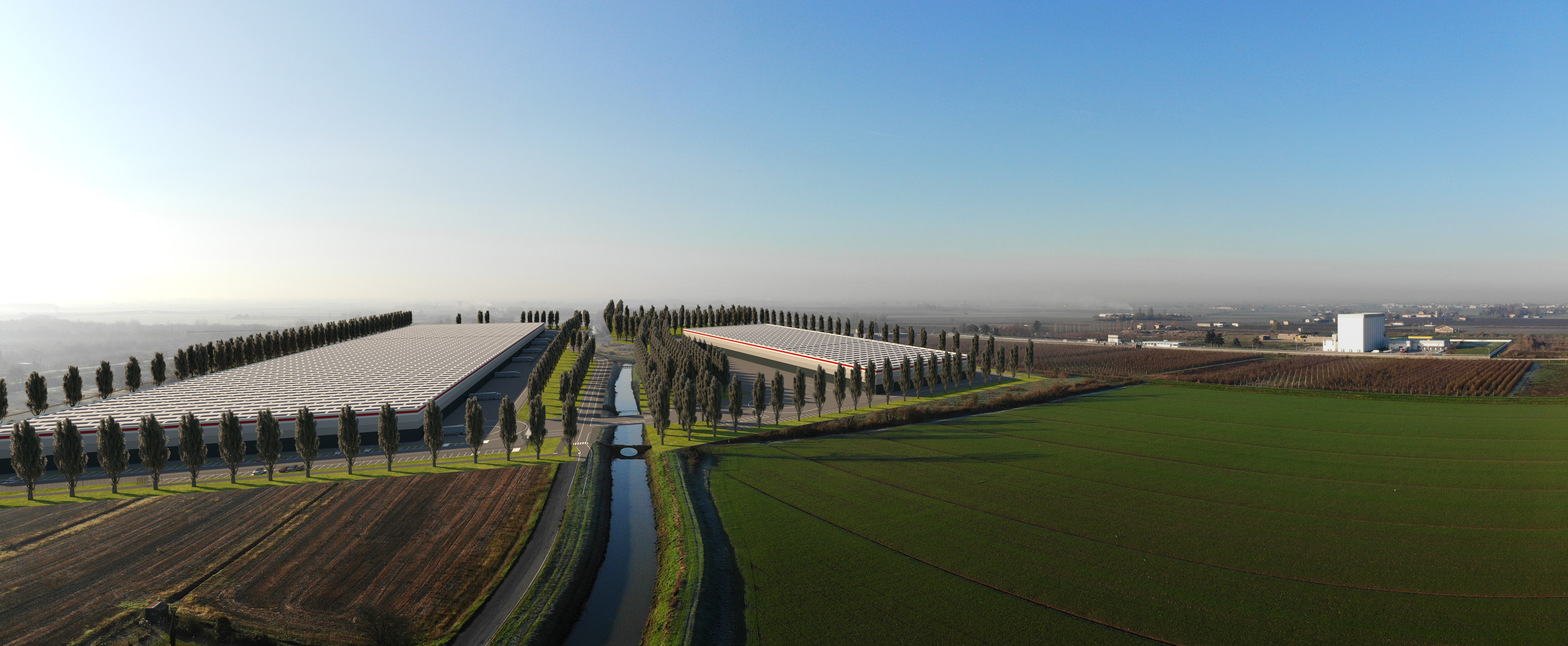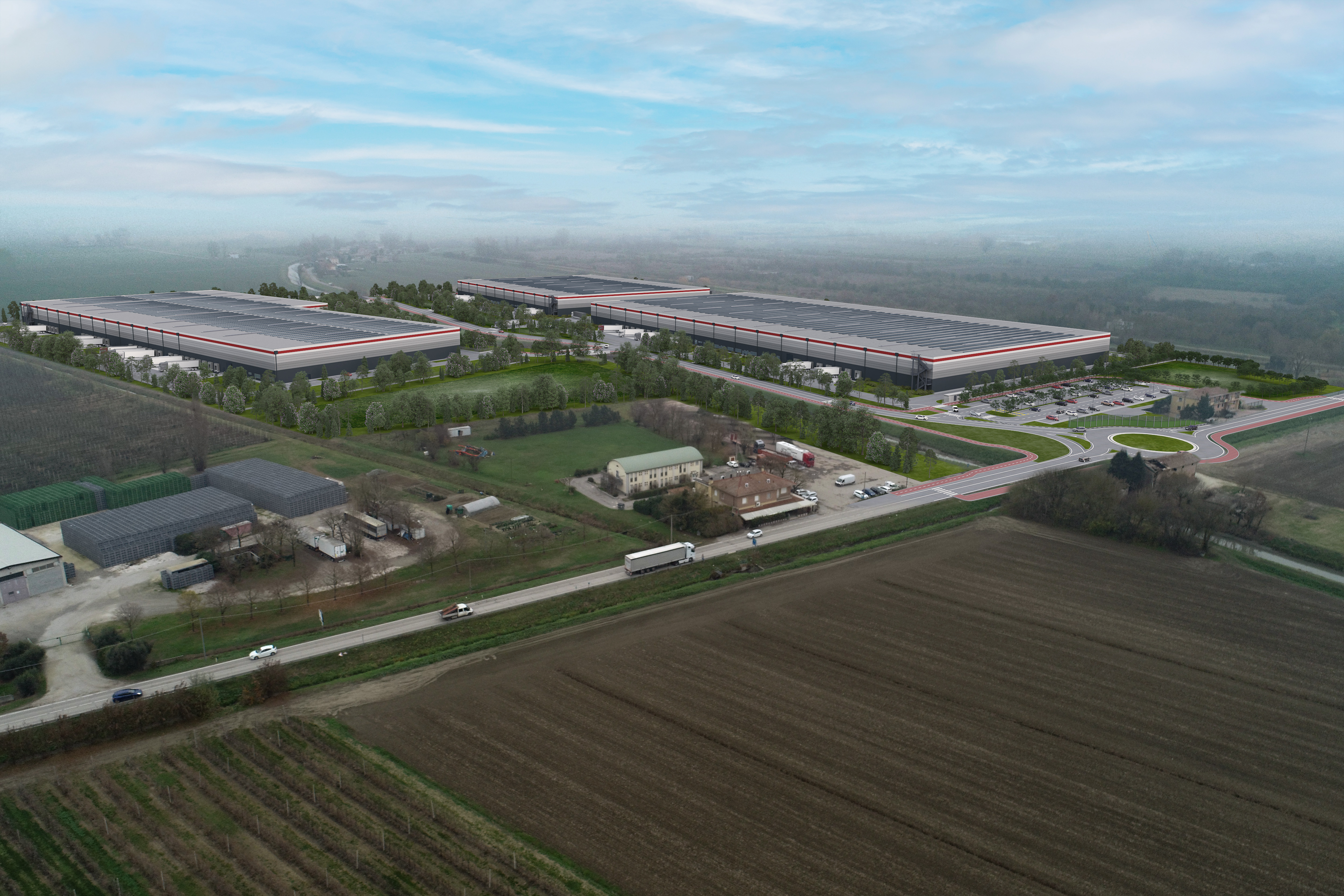 P3 Altedo is a logistic park located in Italy, 20 minutes from Bologna Ring Road. It is conveniently close to the A13 Highway tollbooth and offers excellent accessibility. Ideal for various industries, it has skilled labor availability. Key distances: Bologna Airport (20 mins), Bologna Center (25 mins), Interporto (10 mins), railway station (6 mins), A13 Highway (2 mins), and autobus station (6 mins).