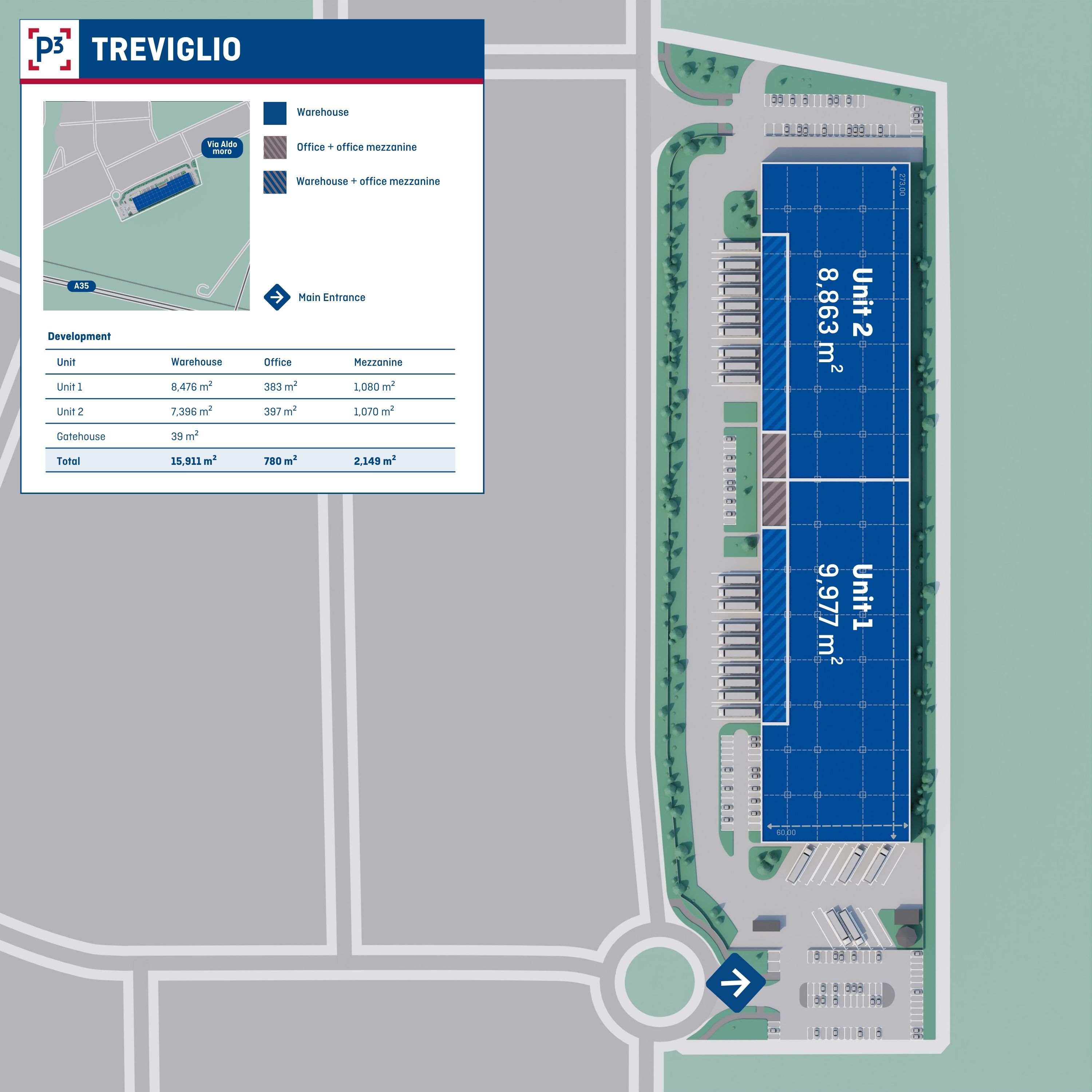 P3 is developing a new logistics warehouse in Treviglio (BG) with a total GLA of 18.836 sqm, divisible into two independent units.