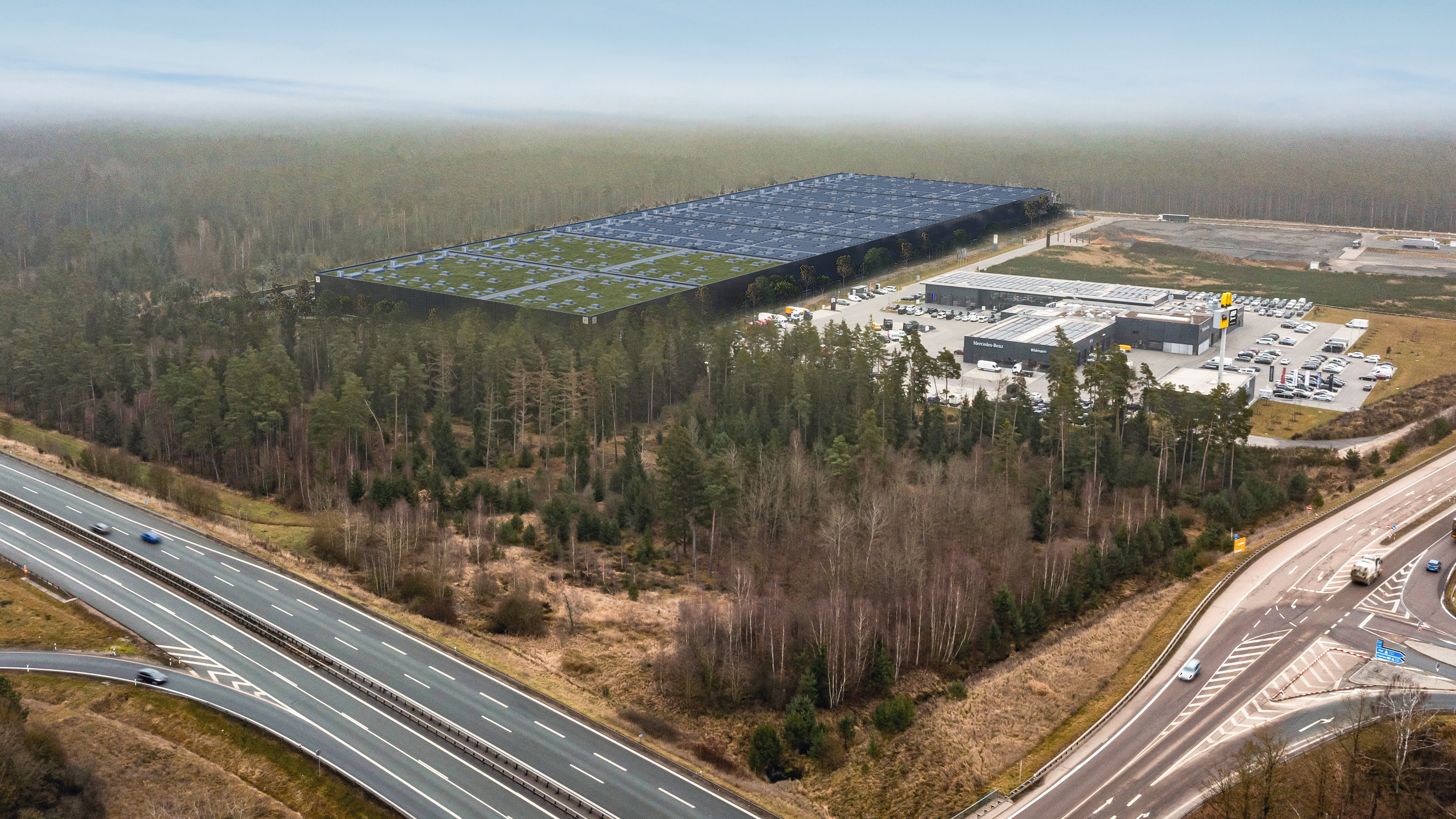 With direct access to the A6 motorway, the site offers fast connections to Nuremberg as well as Regensburg and Munich. Ample car and truck parking, including EV charging stations, supports smooth daily operations.