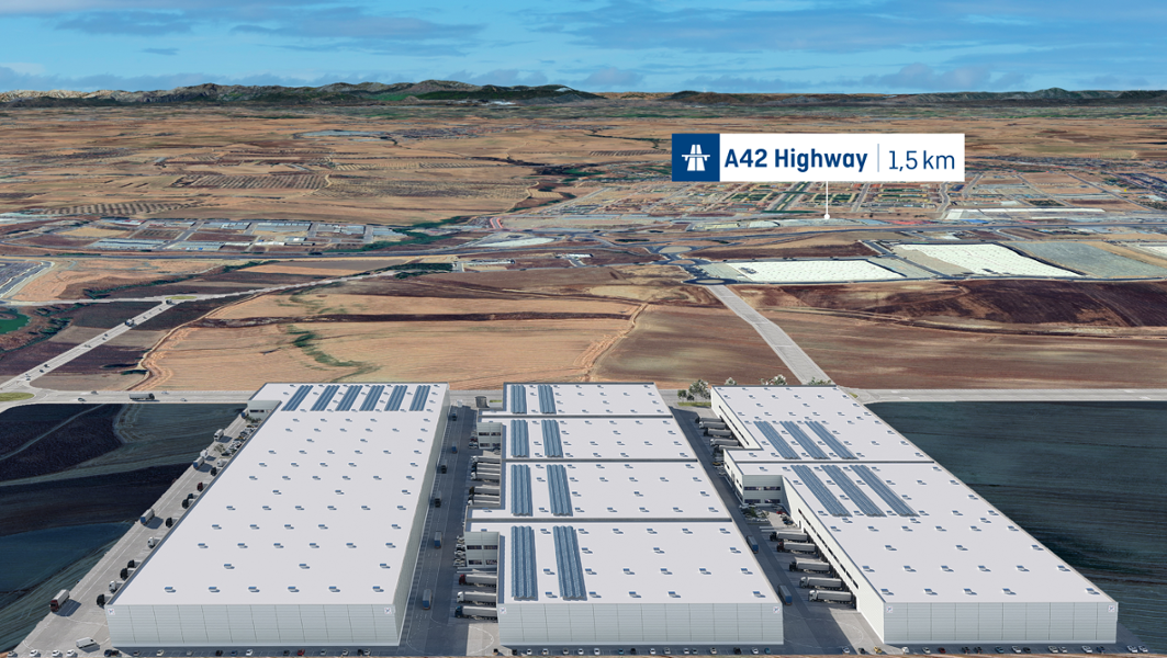 It is a key logistics hub in Spain, located in the 3rd Ring of the Southern Corridor of Madrid, next to the A-42 motorway and 40-min drive to the city center, providing quick and easy access to 90% of Madrid´s population.
