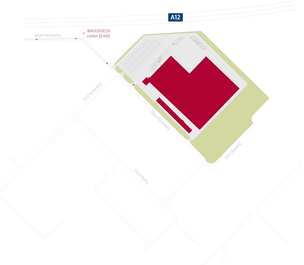Waddinxveen sa nachádza v centre urbanizovanej oblasti Holandska „Randstad“, kde ležia štyri najväčšie mestá v krajine: Amsterdam, Rotterdam, Haag a Utrecht. Areál sa nachádza v tesnej blízkosti diaľnice A12 približne 1 km západne od križovatky diaľnice A12 a A20 medzi Rotterdamem a Utrechtom. Objekt leží približne 15 km od Rotterdamu, 20 km od Haagu, 30 km od Utrechtu a 60 km od letiska Schiphol v Amsterdame. Budova je dobre viditeľná z diaľnice A12. Objekt má oceľovú konštrukciu a betónové podlahy. Vonkajšie steny sú z hliníkových panelov s dvojitým sklom v hliníkovom ráme. Plochá strecha má krytinu zo živice. Budova bola postavená v roku 2006.